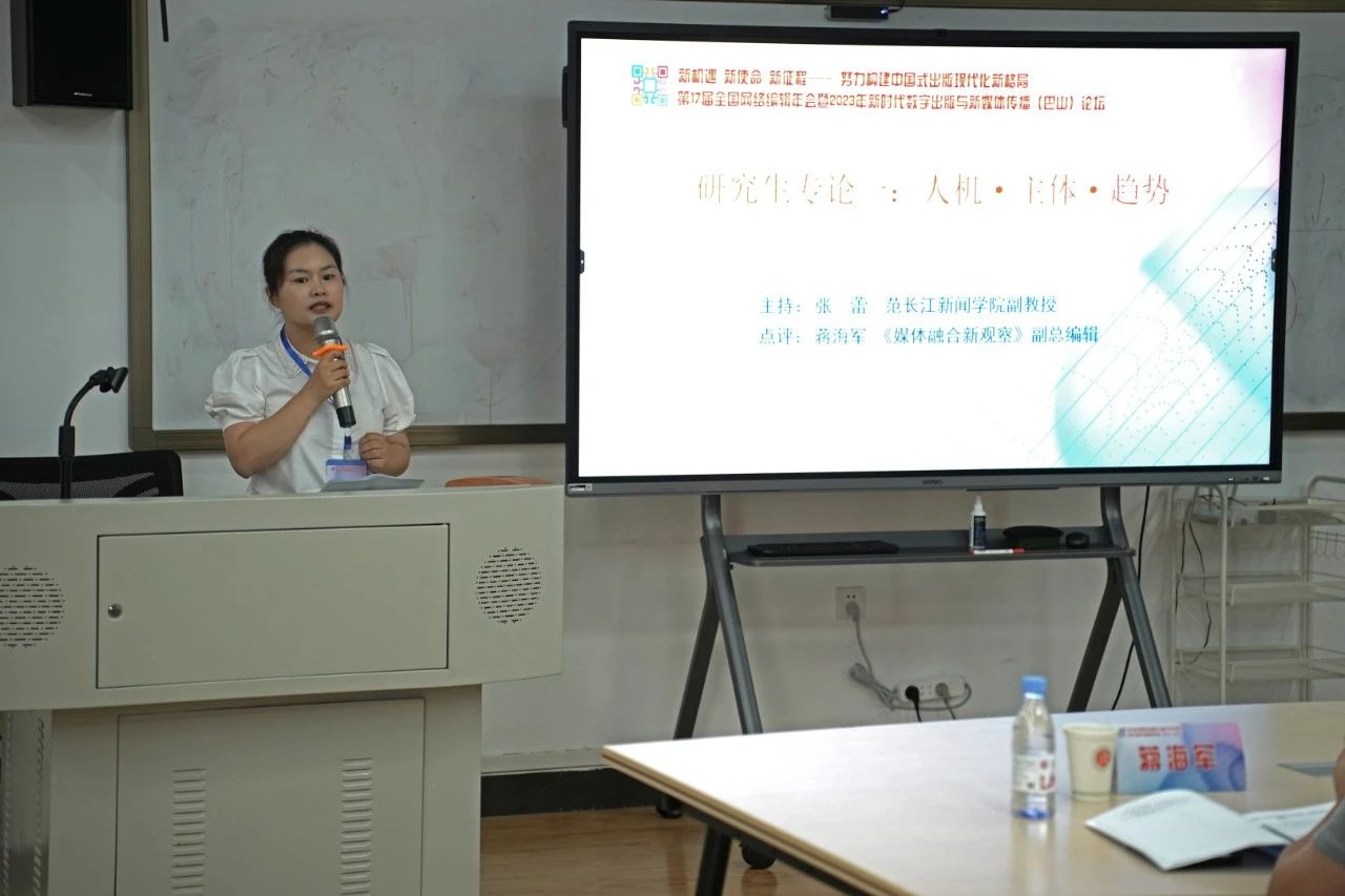 圍繞報告內(nèi)容,蔣海軍副總編輯蔣海軍對各論文進(jìn)行了高度評價,他認(rèn)為論壇論文聚焦的話題較為前沿,選題多樣,體現(xiàn)了人文關(guān)懷與家國擔(dān)當(dāng),實現(xiàn)學(xué)術(shù)與自身融為一體。張蕾副教授對分論壇總結(jié)認(rèn)為,參會同學(xué)的論文選題緊扣前沿?zé)狳c,鼓勵各位研究生利用學(xué)術(shù)資源,呈現(xiàn)更優(yōu)秀的姿態(tài)。