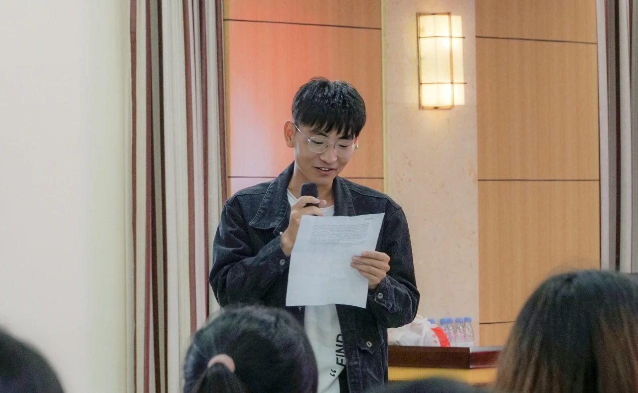 2021級新聞與傳播專業(yè)碩士研究生辛飛同學(xué)代表學(xué)長學(xué)姐發(fā)言,他以自身為例引入發(fā)言的第一要點,讀研的目標(biāo)以及為何讀研、如何讀研。他表示明確讀研的目標(biāo)很重要,以便給予自己指引;至于為何讀研,他認為在研究生這段集中學(xué)習(xí)的時間里可以練就某一方面的本領(lǐng),形成競爭優(yōu)勢;對于如何讀研,他建議做最重要和最應(yīng)該做的事。第二要點則是要多讀書形成自己的思想體系,發(fā)展自己的對話能力。第三要點,在三年里自己所做所學(xué)的基礎(chǔ)上完成自己的研究生生涯目標(biāo)。