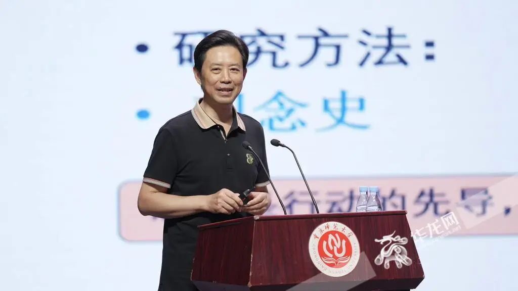 重慶大學(xué)數(shù)字媒體與傳播研究院院長(zhǎng)董天策現(xiàn)場(chǎng)講座。華龍網(wǎng)記者 劉釗 攝