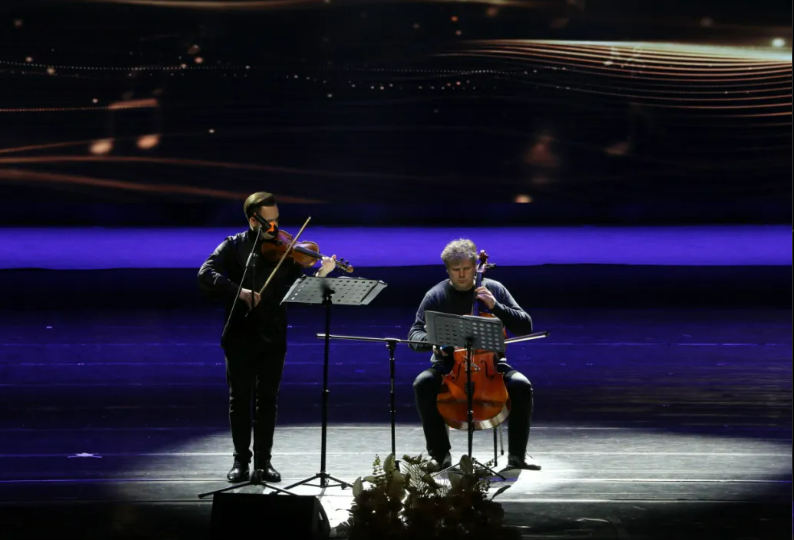 今年我院迎新晚會首邀國際頂尖音樂大師、來自俄羅斯莫斯科國立柴可夫斯基音樂學(xué)院的謝爾蓋·伊林諾夫、費(fèi)奧多爾·阿莫索夫為大家?guī)砭恃葑啵〗衲?月,我校與俄羅斯莫斯科國立柴可夫斯基音樂學(xué)院正式簽署合作協(xié)議,攜手構(gòu)建多層次音樂藝術(shù)人才培養(yǎng)體系,促進(jìn)中俄教育文化領(lǐng)域的交流合作。演奏中,大提琴與小提琴的旋律交相輝映,琴聲時而短促,時而綿長,音符于梁間碰撞,悠揚(yáng)之聲沁人心脾。
