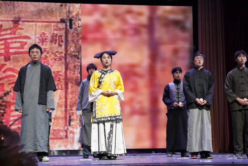 當(dāng)芳舟劇社重演起革命歷史中的一幕幕場景時,革命的艱難險阻得到完美展現(xiàn)。舞臺上,高聲呼喊的“中華民族萬歲”響徹會場,歷史的重任與使命也在此刻傳遞到了新一代青年的肩上。