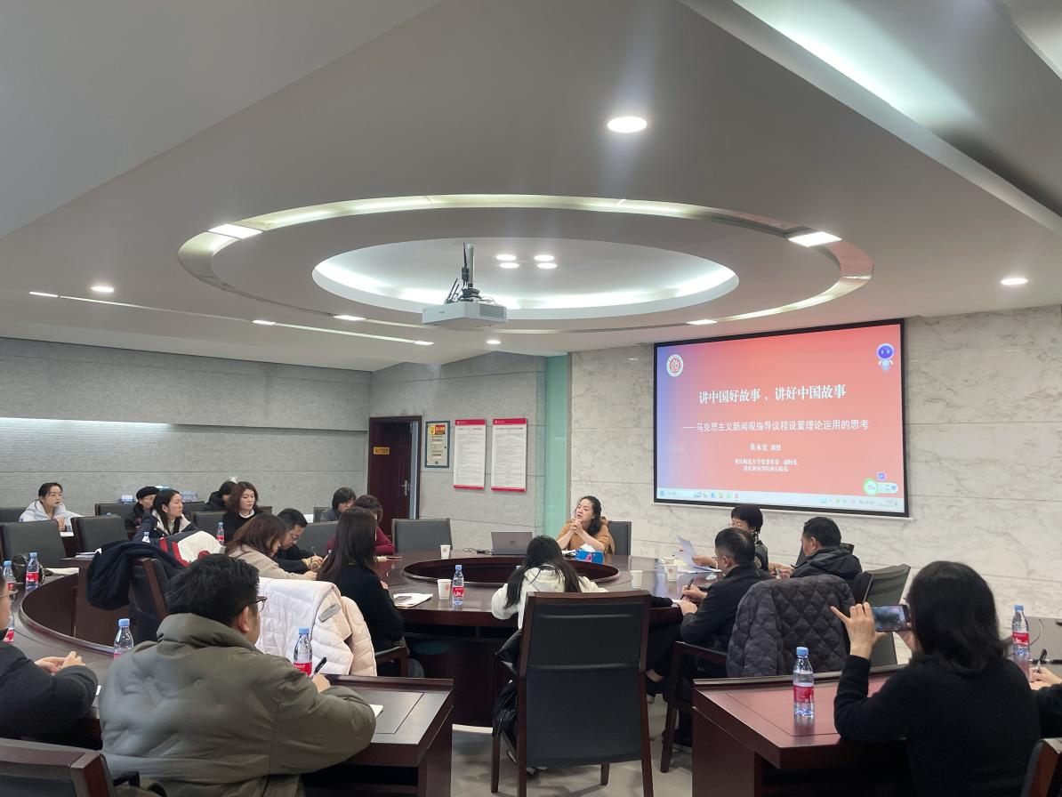 會(huì)上,黃永宜首先對(duì)12月21日的馬克思主義新聞?dòng)^與新聞傳播學(xué)研究系列講座進(jìn)行了總結(jié)和回顧。隨后,黃永宜作題為《講中國好故事講好中國故事——馬克思主義新聞?dòng)^指導(dǎo)議程設(shè)置理論運(yùn)用的思考》的專題講座,深入淺出地闡述了馬克思主義新聞?dòng)^的基本原理和核心觀點(diǎn),并結(jié)合當(dāng)前新聞傳播的實(shí)際案例,詳細(xì)分析了議程設(shè)置理論在馬克思主義新聞?dòng)^指導(dǎo)下的具體運(yùn)用。她強(qiáng)調(diào),講好中國故事,不僅是對(duì)外傳播中國聲音、展現(xiàn)中國形象的重要途徑,是對(duì)內(nèi)凝聚共識(shí)、增強(qiáng)民族自信心和自豪感的重要手段,更是重慶新聞學(xué)院未來發(fā)展的重要基石與方向。我們必須堅(jiān)持馬克思主義新聞?dòng)^的指導(dǎo)地位,不斷創(chuàng)新其研究和實(shí)踐應(yīng)用的方法和手段,扎實(shí)推進(jìn)部校共建重慶新聞學(xué)院的建設(shè)。